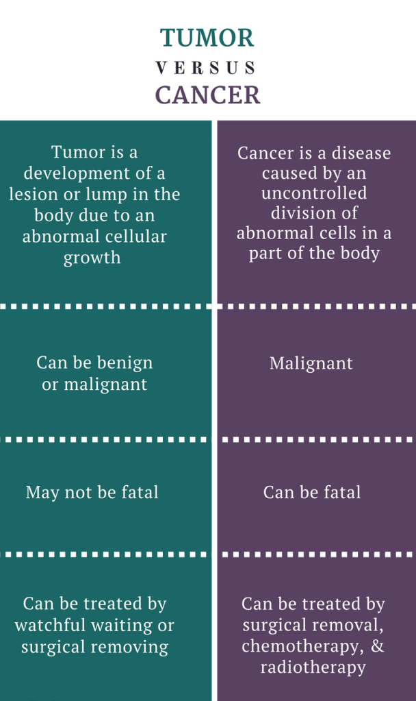 On the other hand, cancer is a degenerative condition or disease where there is also uncontrollable growth in the body, but the greatest difference: The growth may spread throughout the body. The cancer cells that do spread throughout the body are harmful, and the problem may not remain in just one part of the body. A malignant tumor may also spread.